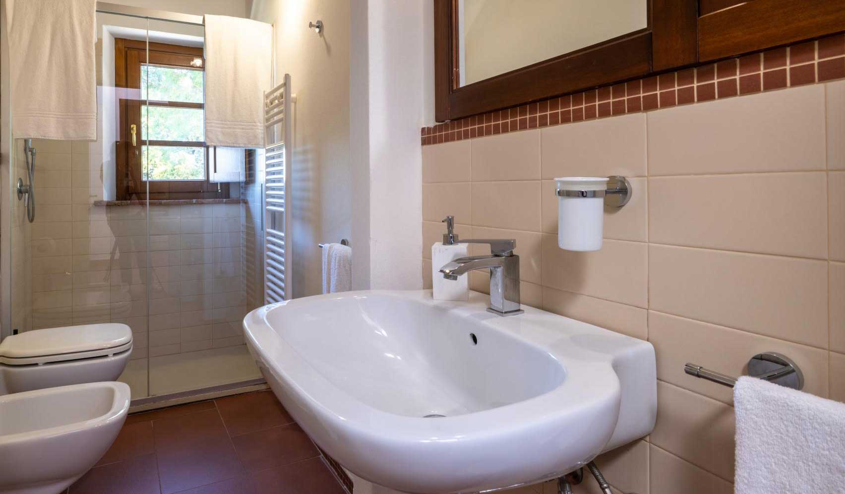 Ogni elemento – dai materiali naturali all’arredamento essenziale – è pensato per favorire il riposo e la connessione con l’ambiente. La possibilità di unirlo all’appartamento Etruria lo rende flessibile anche per famiglie o gruppi più ampi, senza rinunciare alla propria indipendenza.