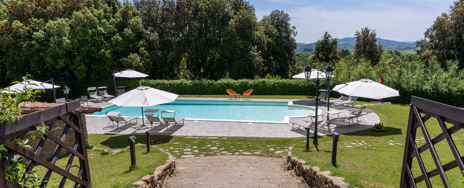 Qui non ci sono barriere visive: l’interno e l’esterno si compenetrano. Le terrazze guardano la vallata, le finestre inquadrano le colline, i muretti in pietra si confondono con i margini del bosco.